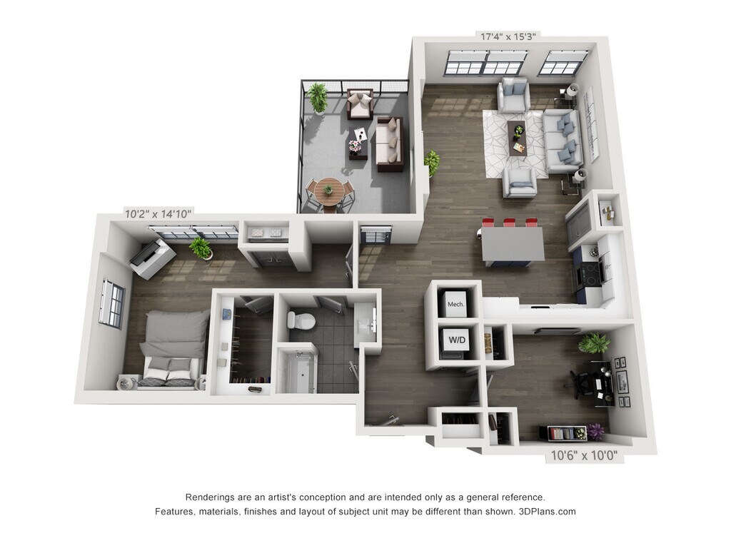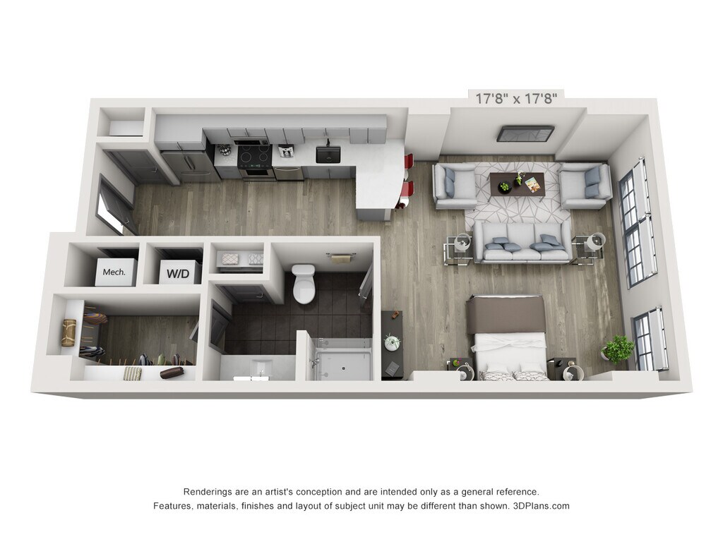 Apartment Model: SFStudio, 1 Bath, 717 sq ftAvailable NowFloor plans are artist's rendering. All dimensions are approximate. Actual product and specifications may vary in dimension or detail. Not all features are available in every rental home. Prices and availability are subject to change. Base rent is based on monthly frequency. Additional fees may apply, such as but not limited to package delivery, trash, water, amenities, etc. Deposits vary. Please see a representative for details.