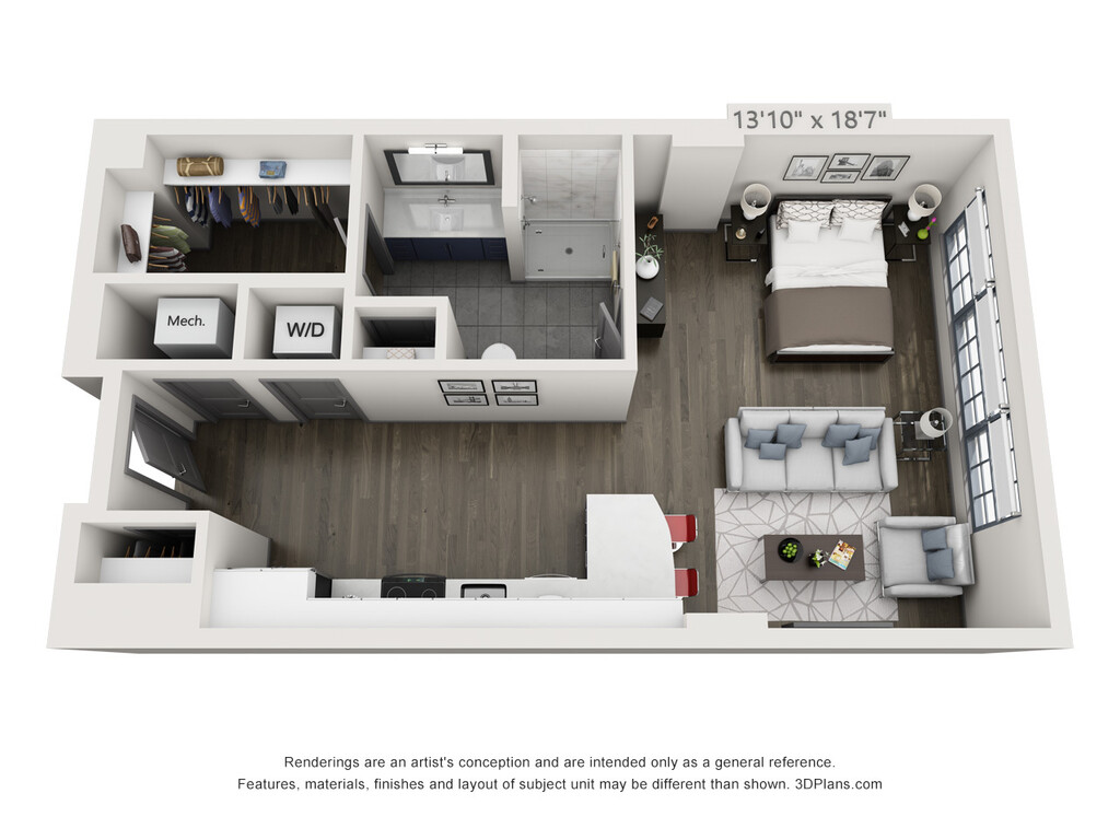 Studio, 1 Bath, 666 sq ftModel Gallery