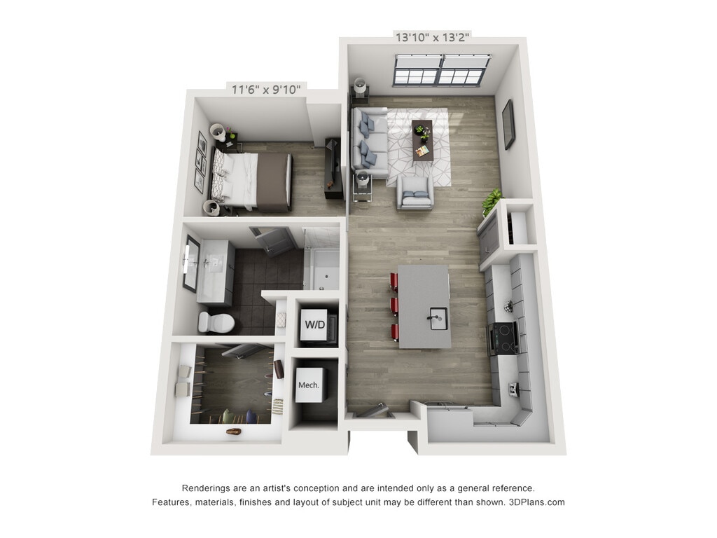 Studio, 1 Bath, 596 sq ftModel Gallery