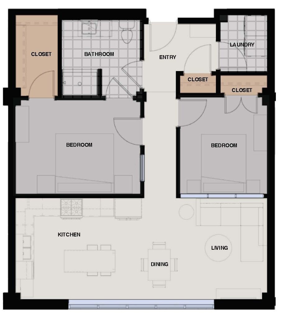 2 Beds, 1 Bath, 952 sq ftAvailable NowModel Gallery