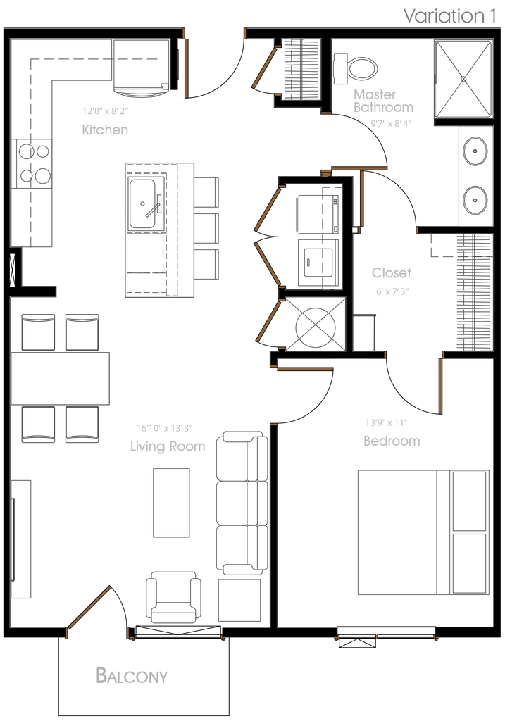 1 Bed, 1 Bath, 734 sq ftAvailable NowModel Gallery