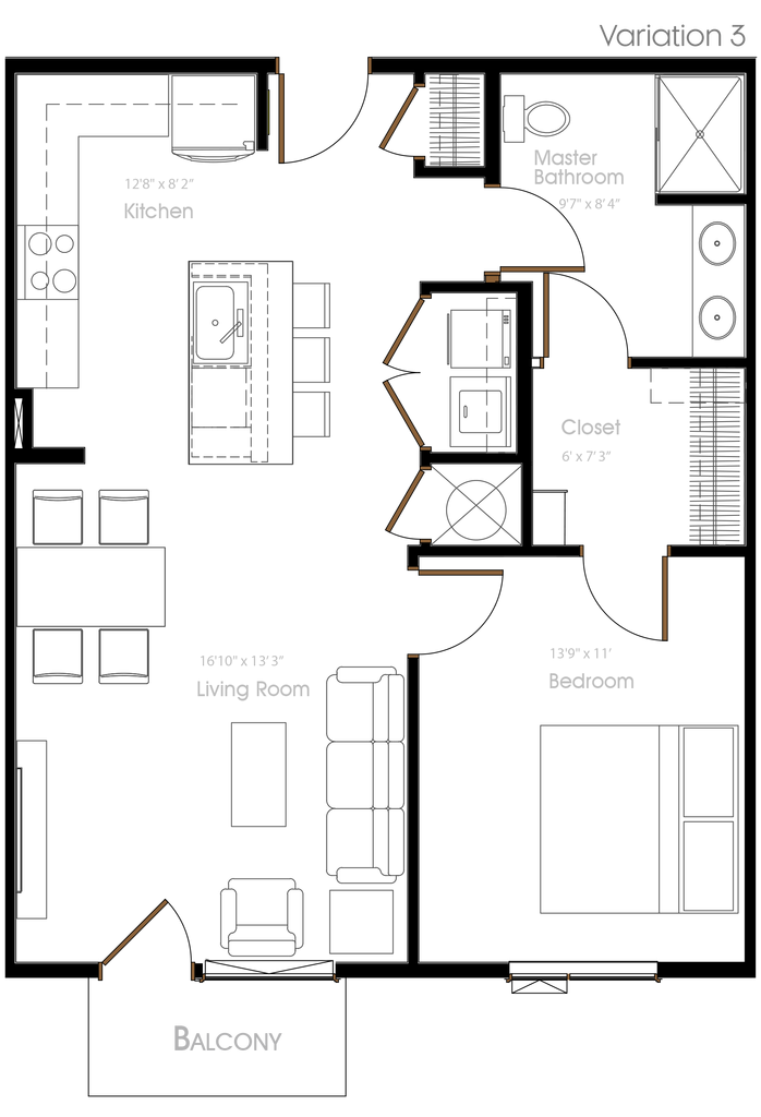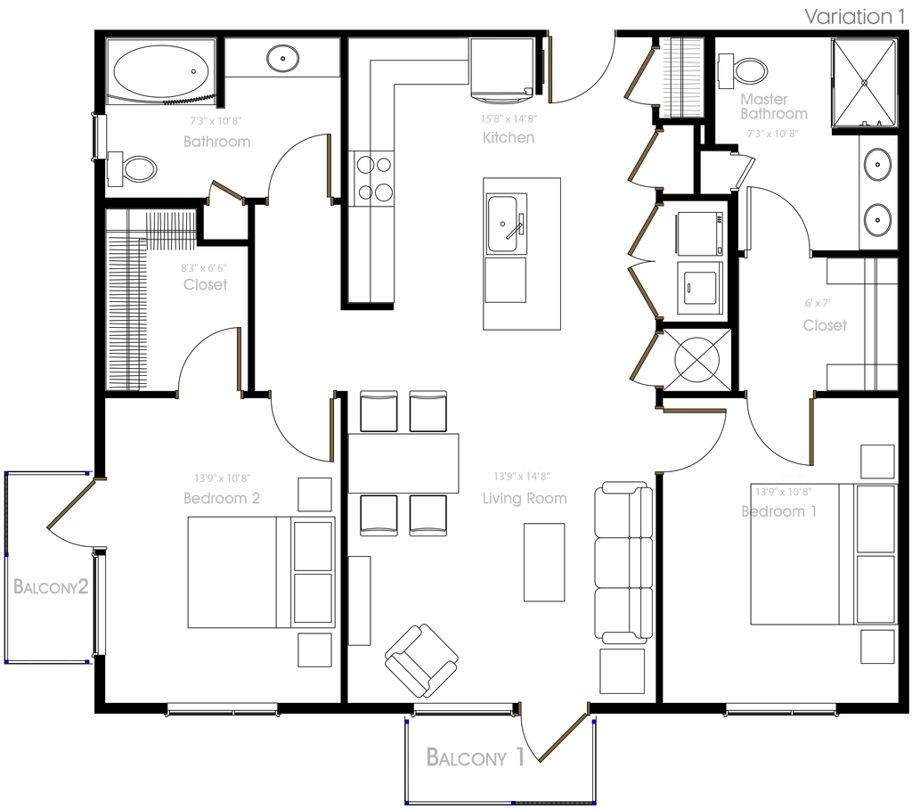 Haw - Floorplan 2 Apartment Unit: 141Apartment Model: Haw1 Bedroom, 1 Bath, 734 sq ftAvailable Now![]()