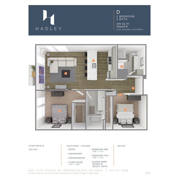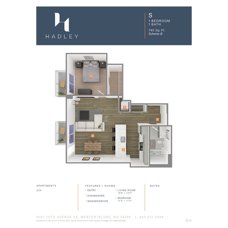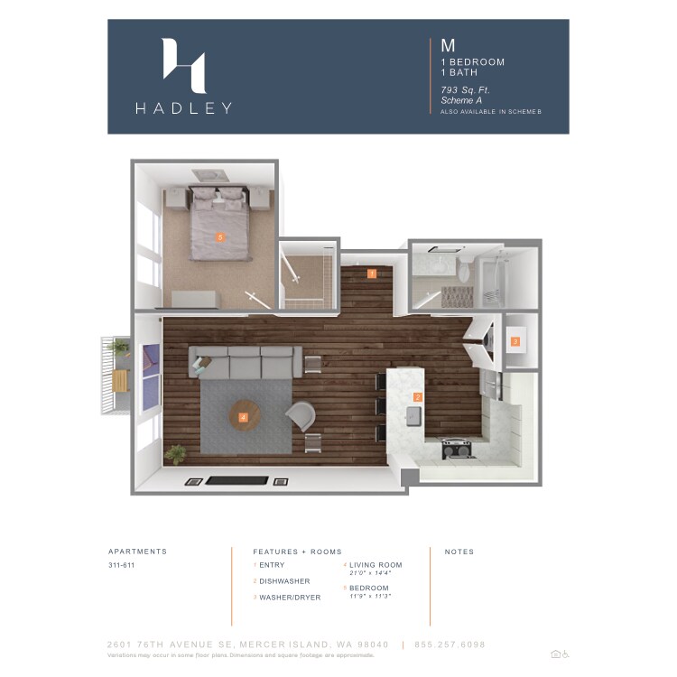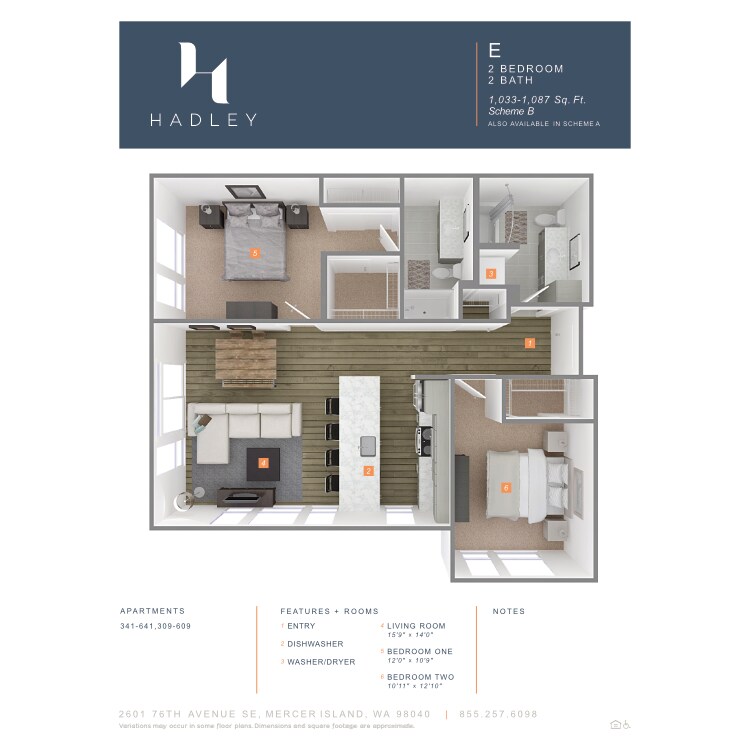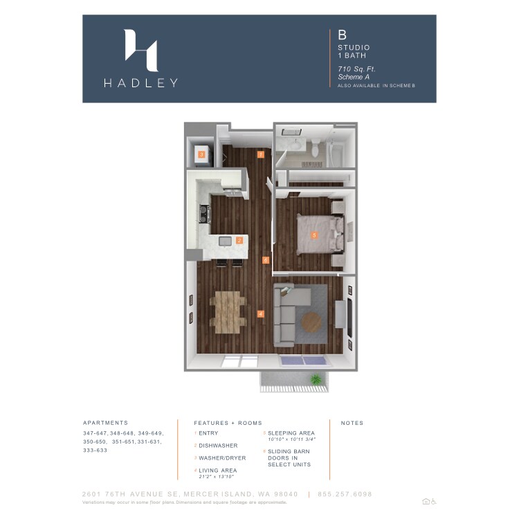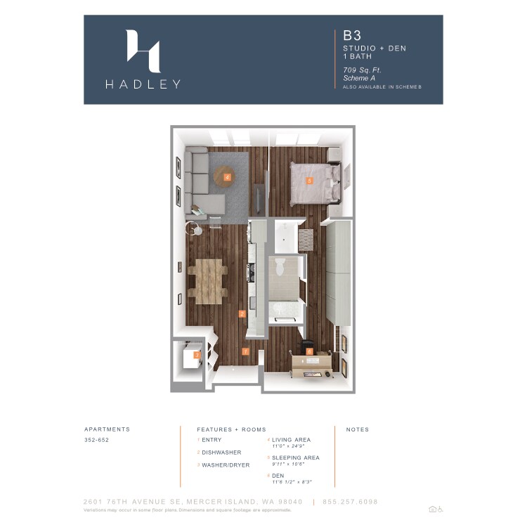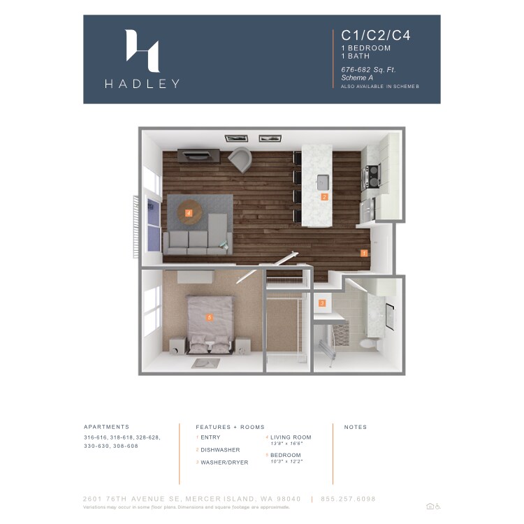 The Hadley is located at 2601 76th Ave SE near the Downtown Mercer Island area of Mercer Island, WA