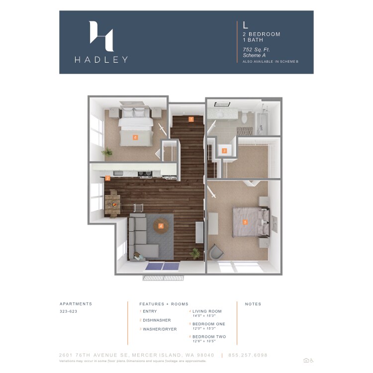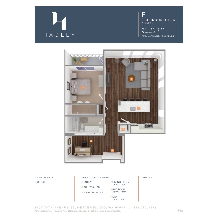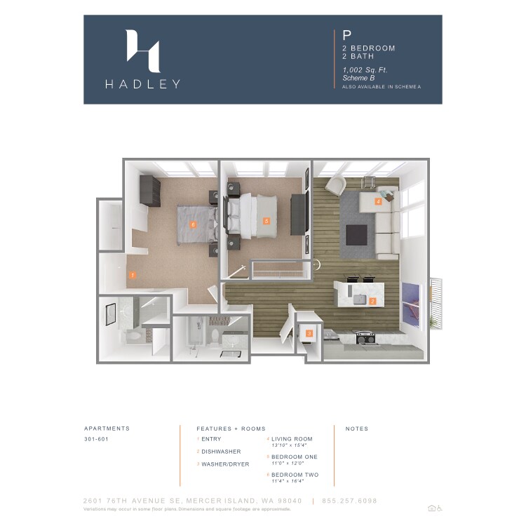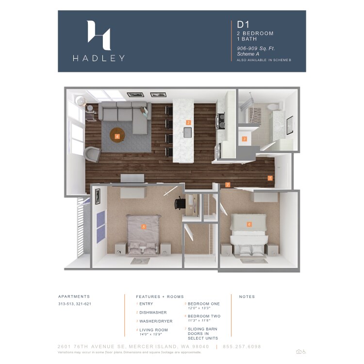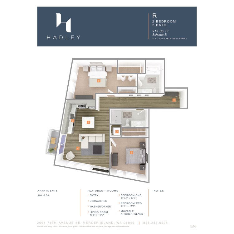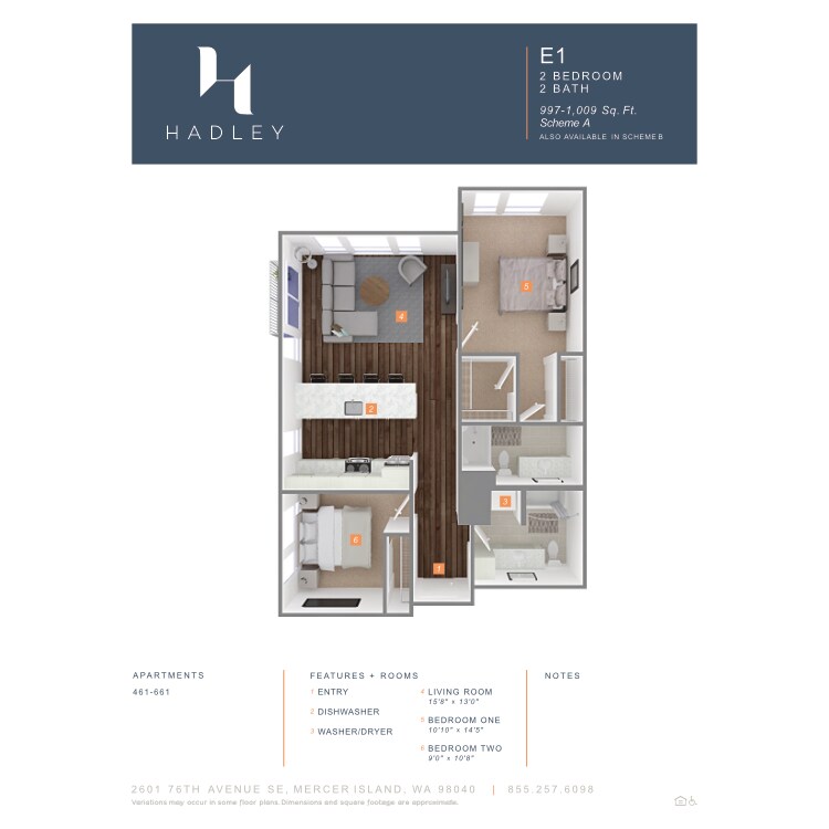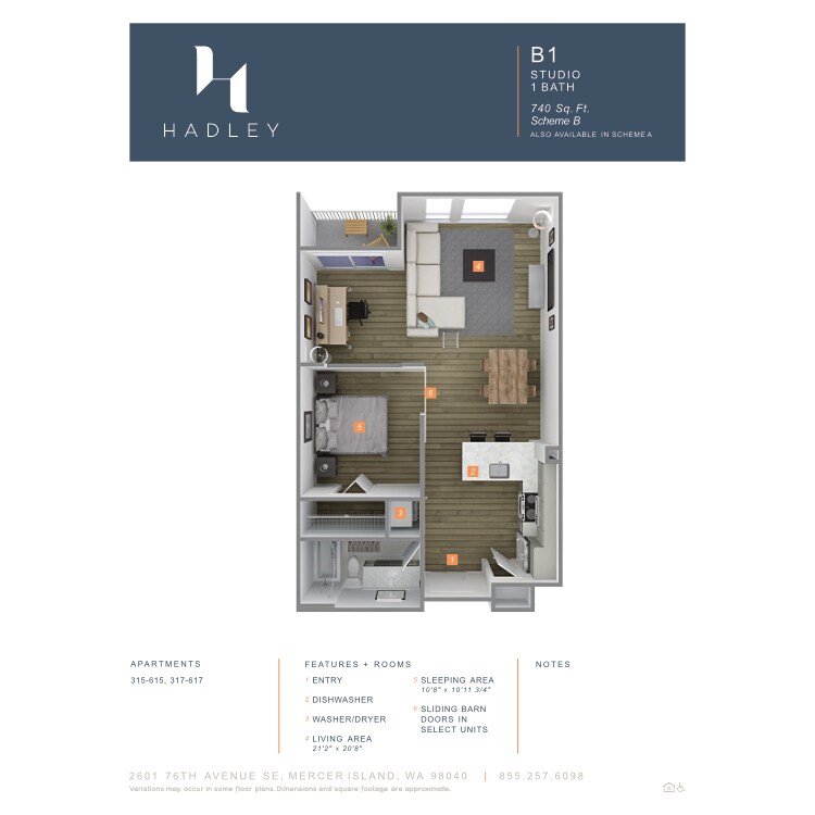 The Hadley is located at 2601 76th Ave SE near the Downtown Mercer Island area of Mercer Island, WA