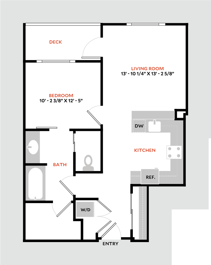 1 Bed, 1 Bath, 691 sq ftAvailable NowModel Gallery