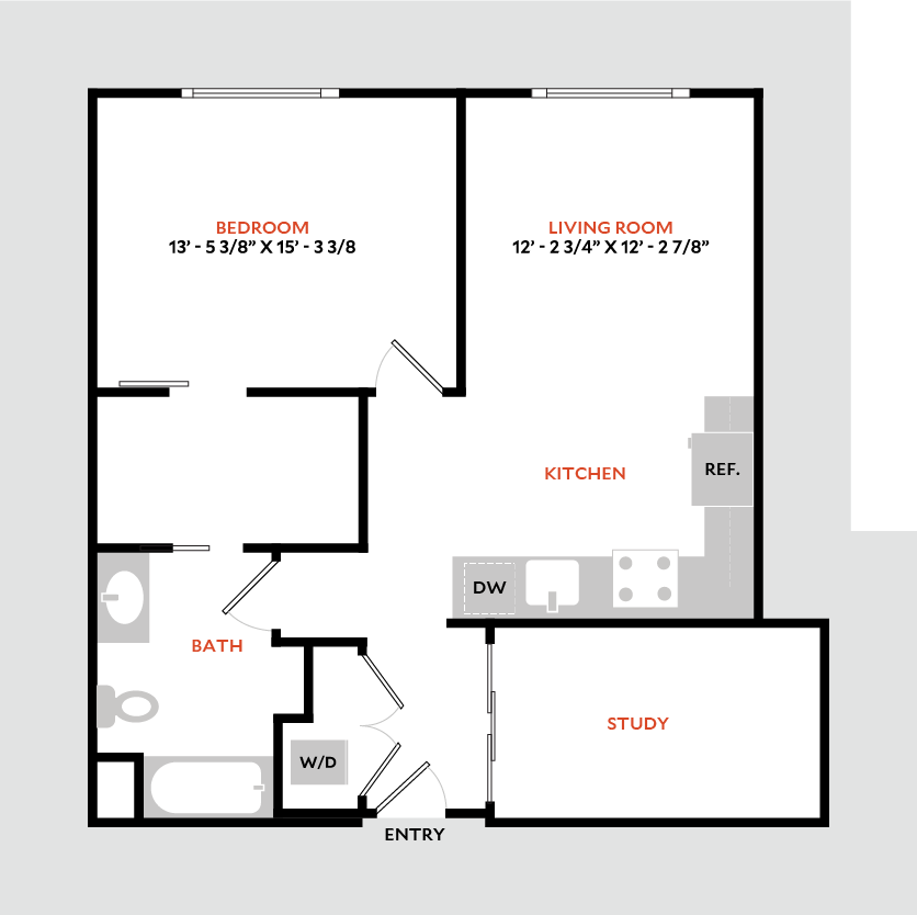 Studio, 1 Bath, 577 sq ftModel Gallery