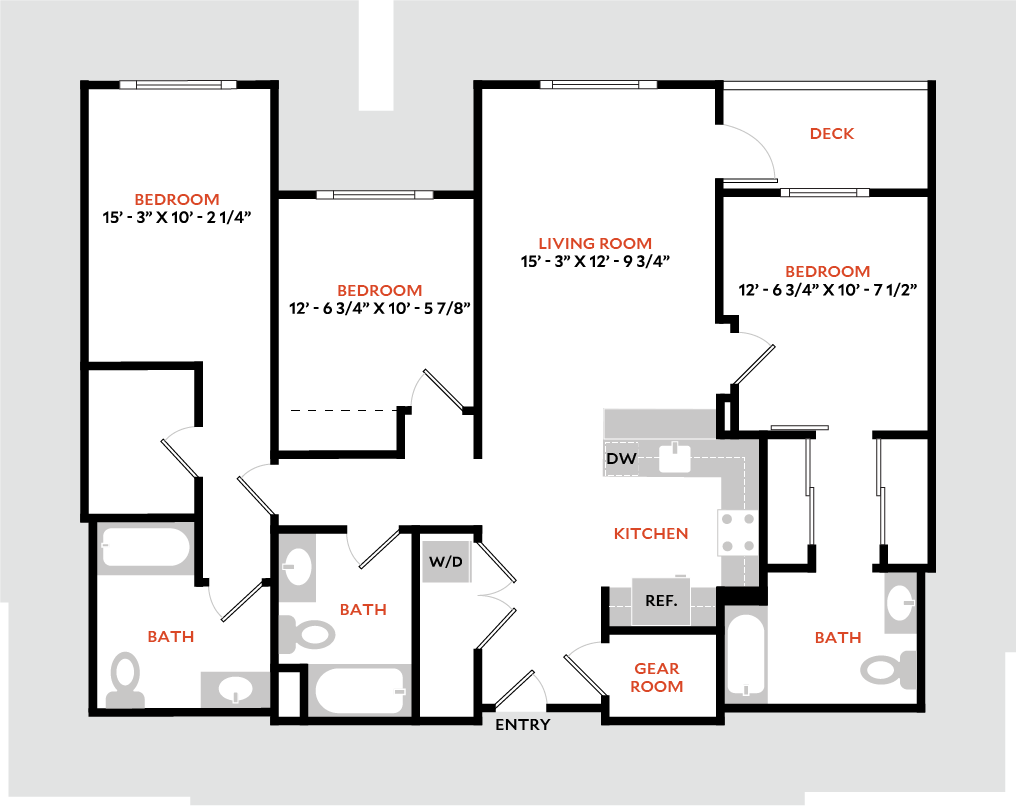 1 Bed, 1 Bath, 915 sq ftAvailable NowModel Gallery