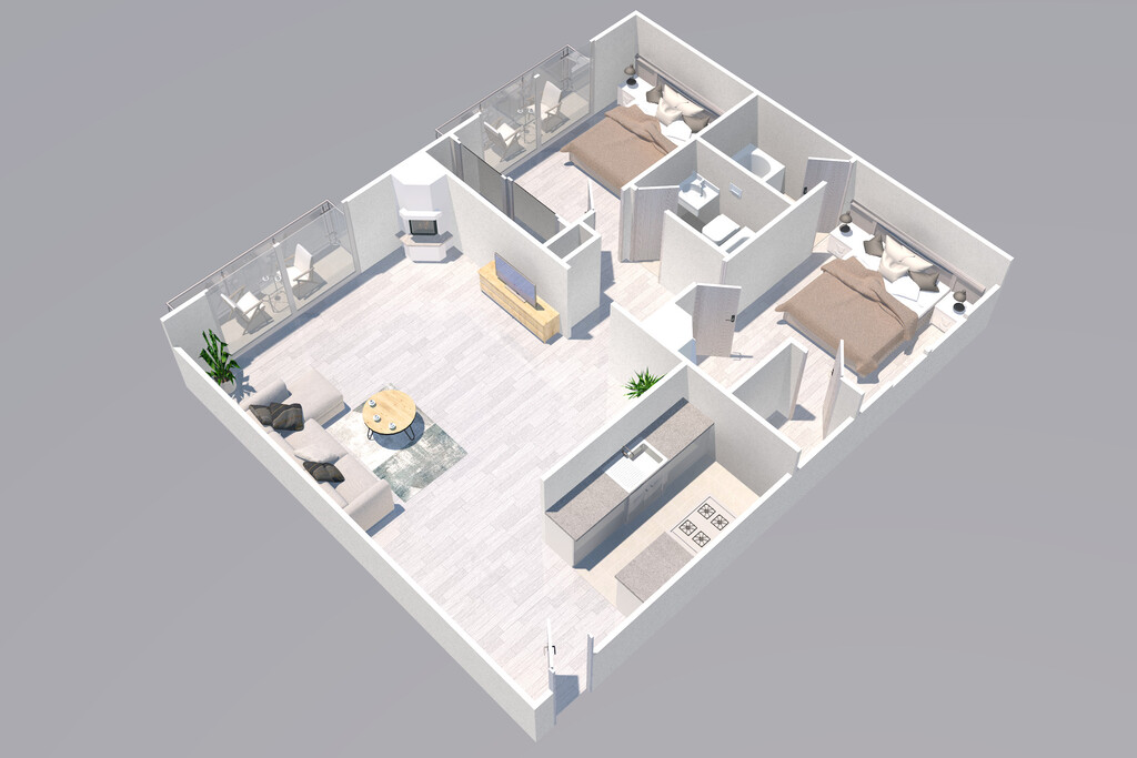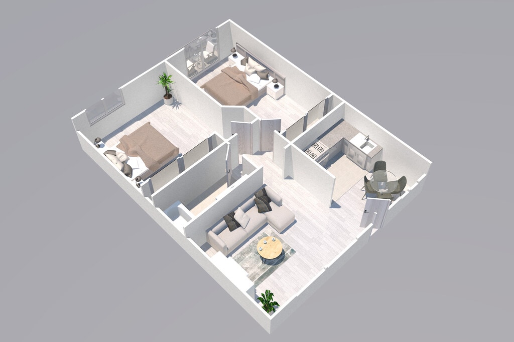 2 Beds, 1 Bath, 884 sq ftModel Gallery