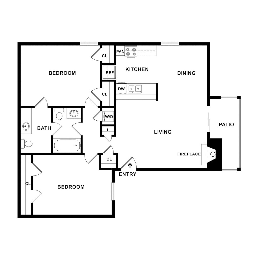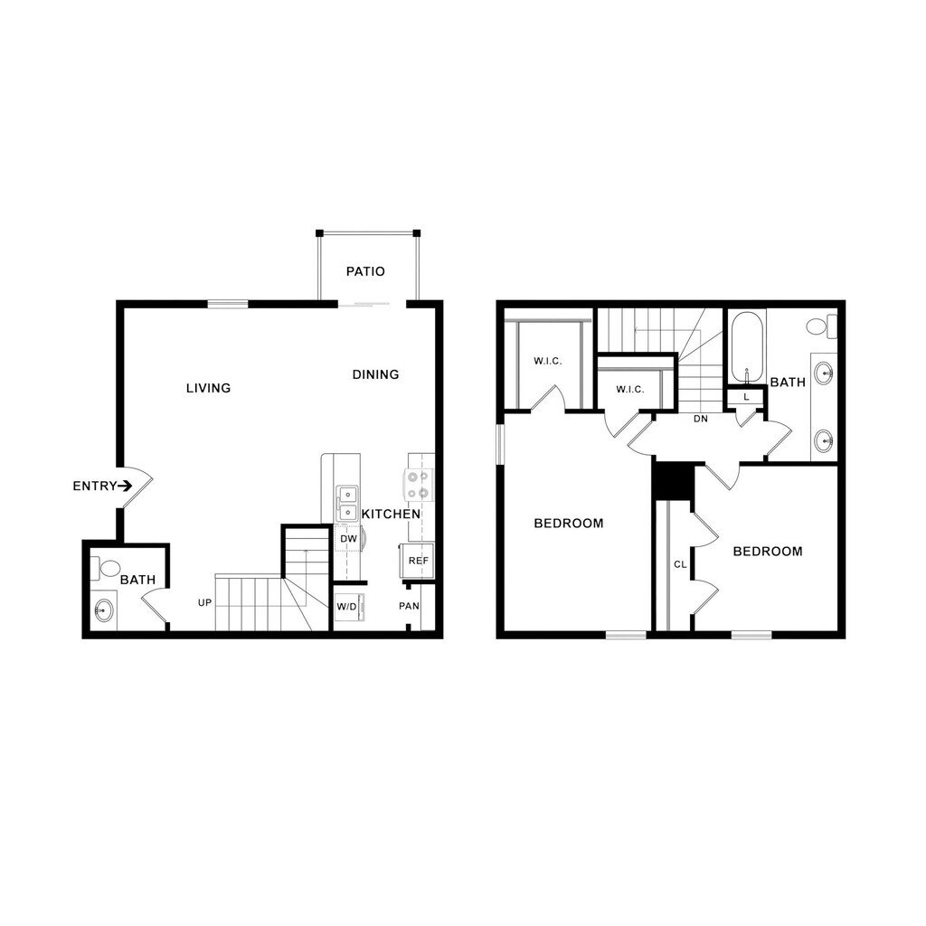 Apartment Model: B1From $1,0252 Bedroom, 1.5 Bath, 801 sq ftAvailable Now![]()