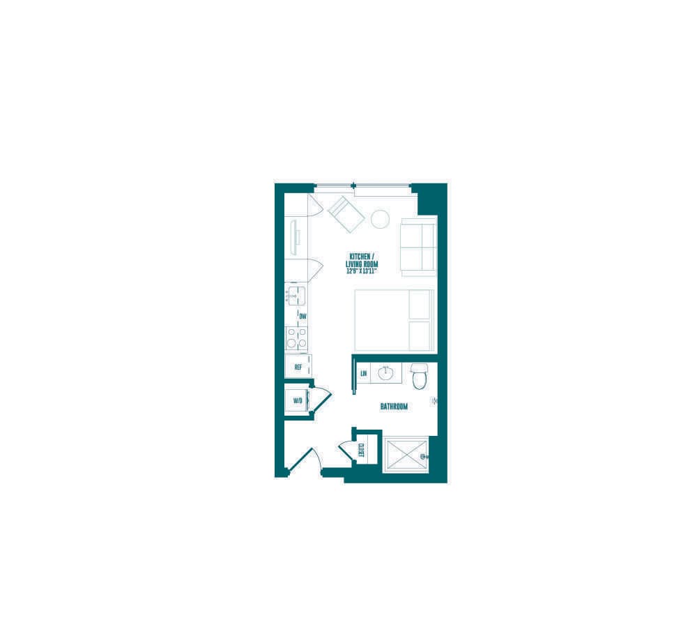 Studio, 1 Bath, 329 sq ftAvailable NowModel Gallery