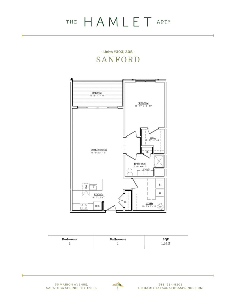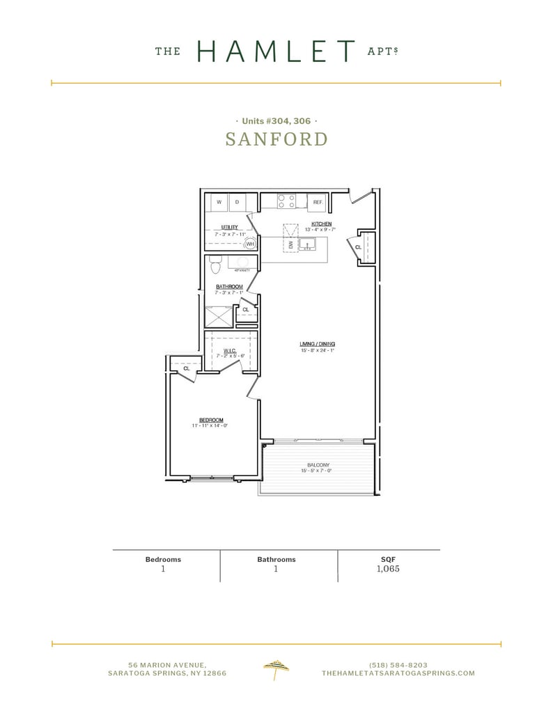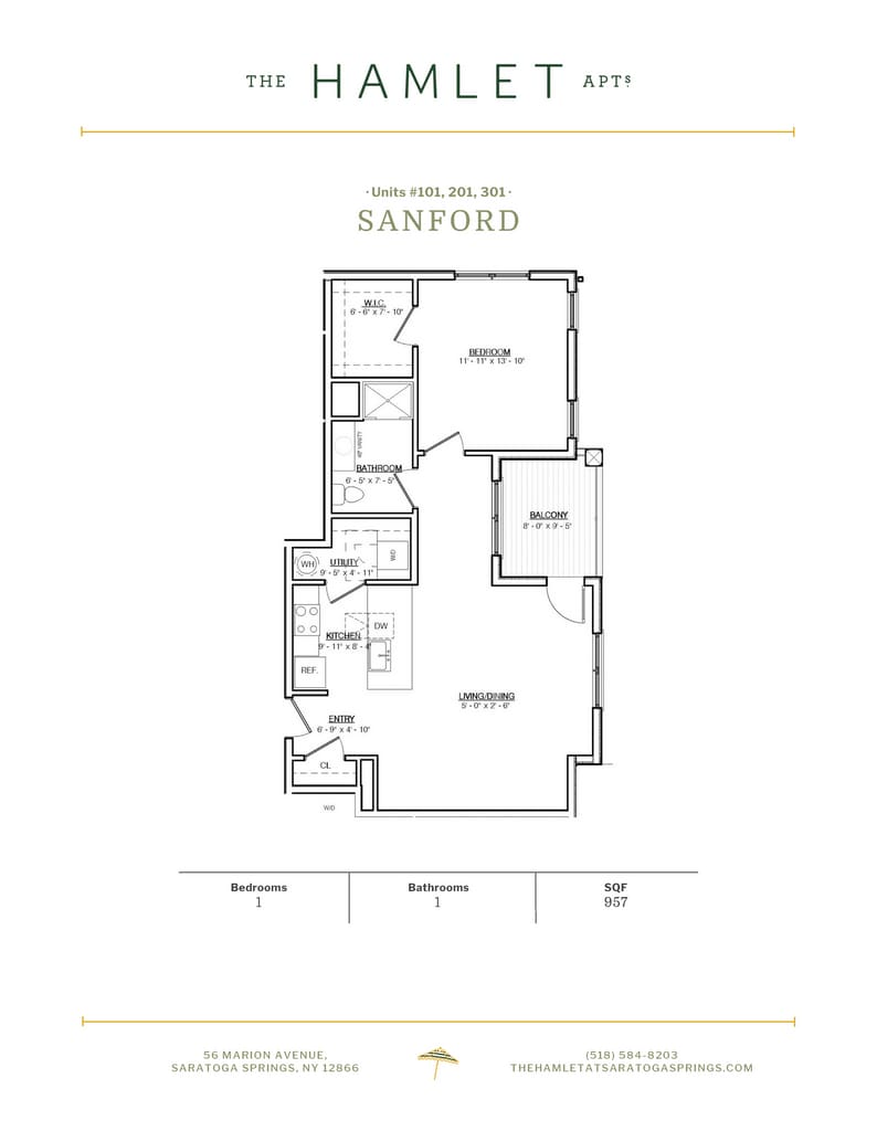 Sanford - Floorplan 8 Apartment Unit: B-301Apartment Model: Sanford$2,0041 Bedroom, 1 Bath, 960 sq ftAvailable NowForego