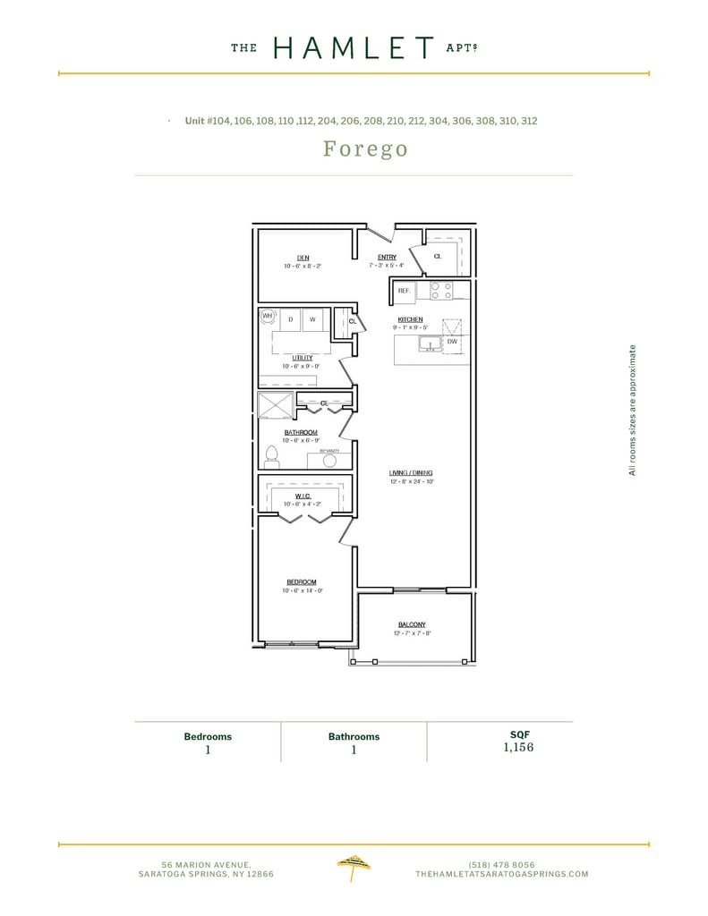 Forego - Floorplan 4 Apartment Unit: C-110Apartment Model: Forego$2,1241 Bedroom, 1 Bath, 1010 sq ftAvailable March 30, 2026Whitney Live-Work