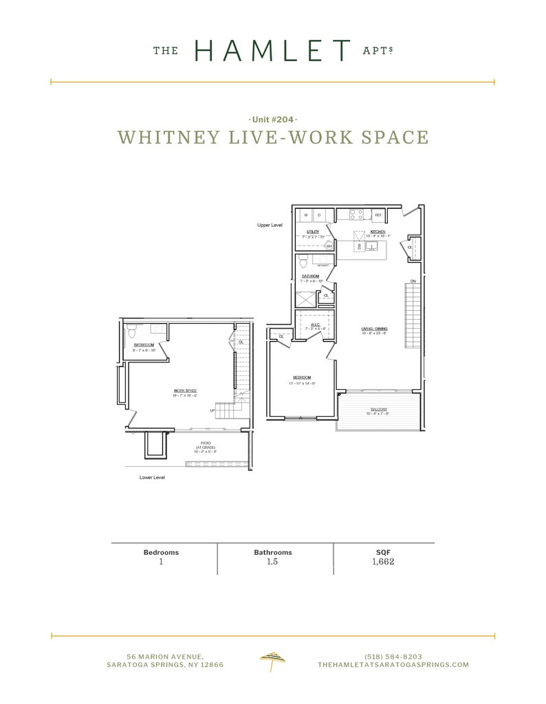 Apartment Model: Whitney Live-Work$2,4441 Bedroom, 1.5 Bath, 960 sq ftAvailable January 14, 2026![]()