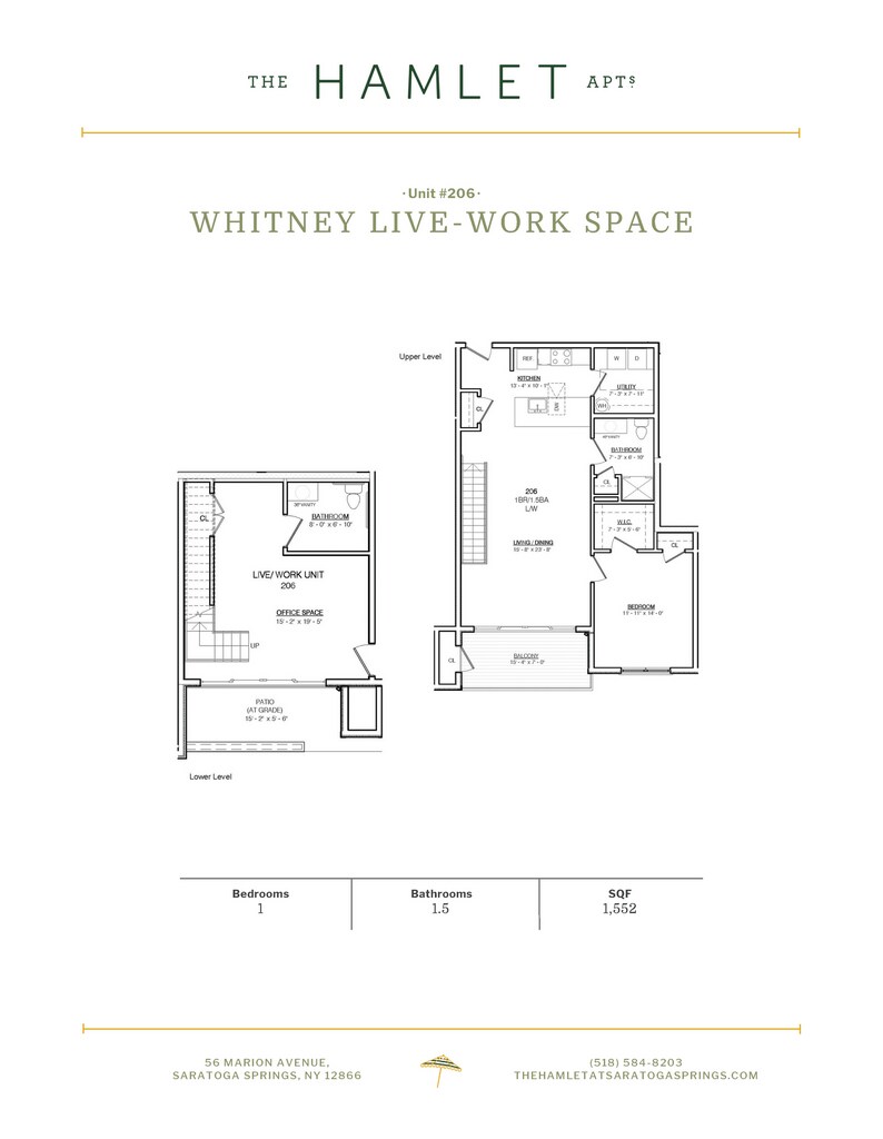 Whitney Live-Work - Floorplan 3 Apartment Unit: A-206Apartment Model: Whitney Live-Work$2,4441 Bedroom, 1 Bath, 960 sq ftAvailable January 14, 2026Moreno