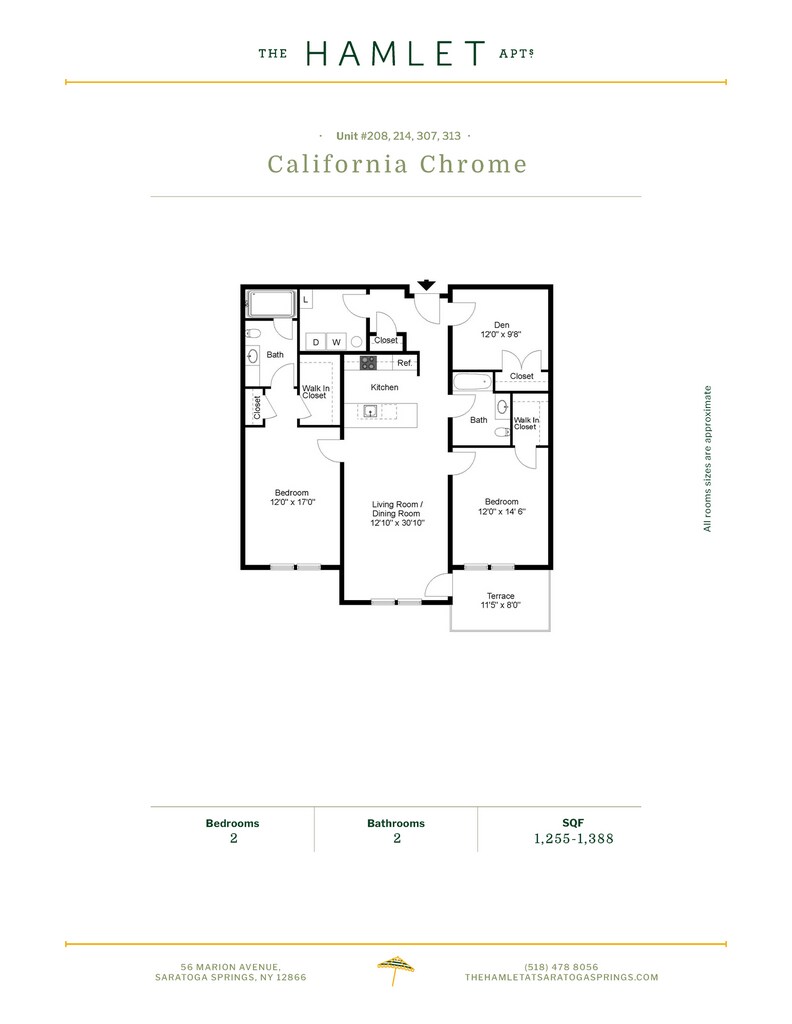 The Hamlet at Saratoga Springs offers Studio to 3 Bedroom apartments starting from $2,004 and having 445–1,808 sq ft. Here is the current pricing and availability: