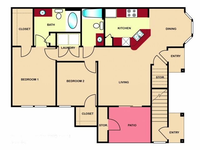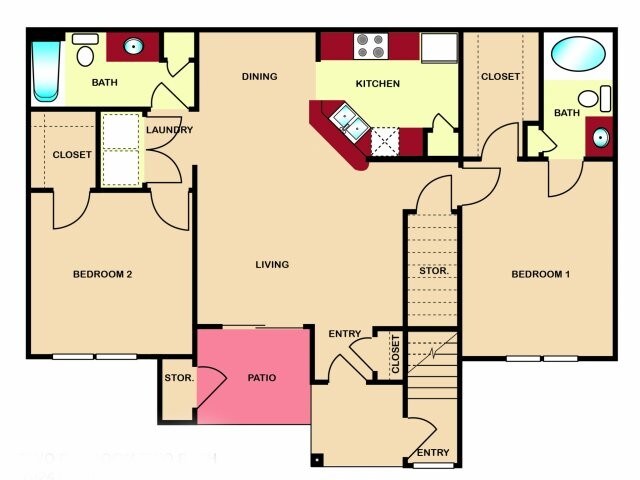 2 Beds, 2 Baths, 1024 sq ftLargest 2 BedroomThis is the largest 2 Bedroom at this PropertyModel Gallery