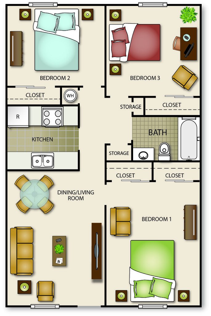 Availability Date Unit Sq Ft Unavailable Three Bedroom One Bath 1020 sq ft Apartment Model: Three Bedroom One Bath3 Bedroom, 1 Bath, 1020 sq ftUnavailableThree Bedroom One Bath - Floorplan 1