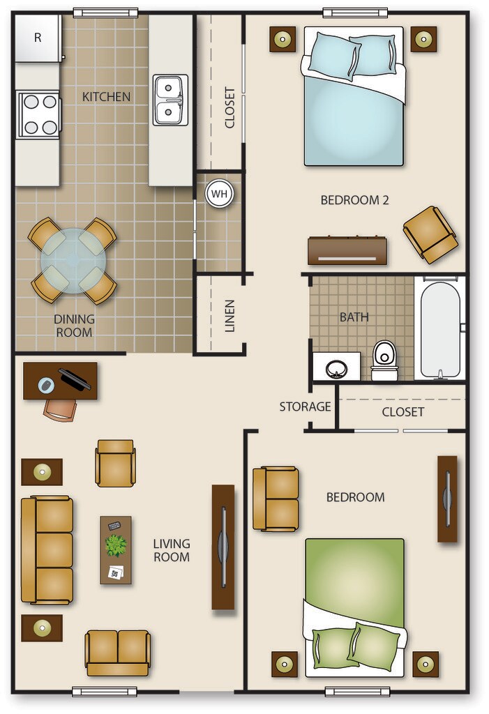 2 Beds, 1 Bath, 846 sq ftModel Gallery