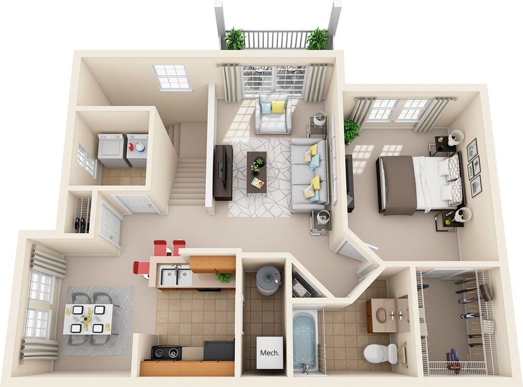 Apartment Model: 1 Bedroom 1 Bath Second Floor - 915From $1,5121 Bedroom, 1 Bath, 915 sq ftAvailable February 20, 2026FloorplansPhotos![]()