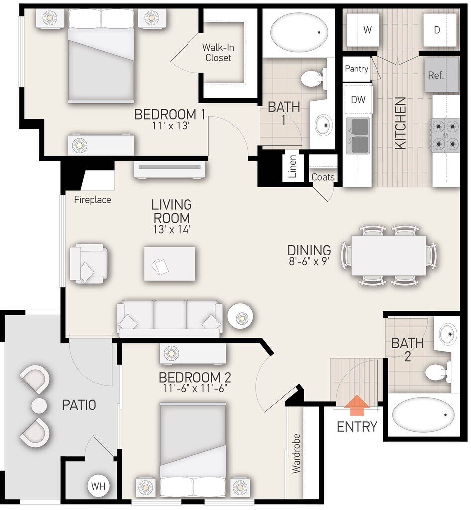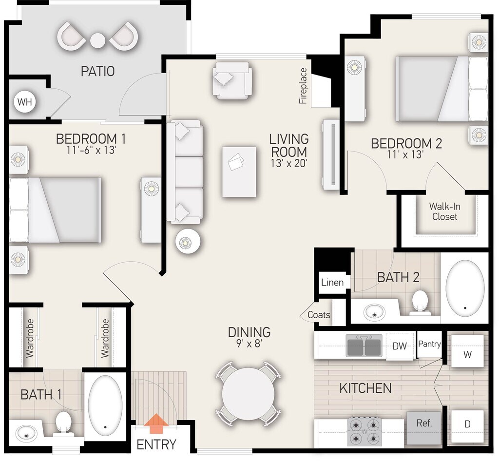2 Beds, 2 Baths, 1145 sq ftAvailable NowModel Gallery