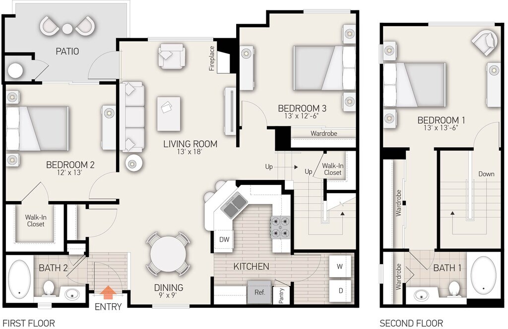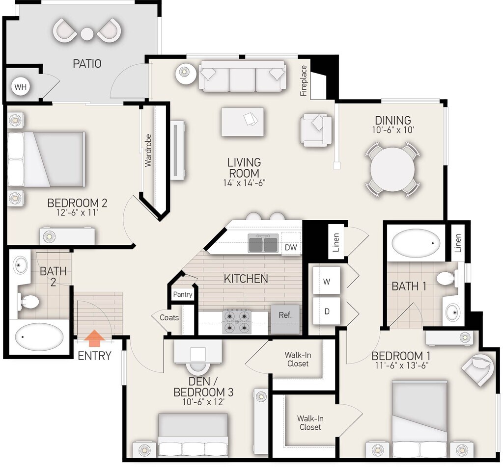 Apartment Model: Plan 5From $3,8252 Bedroom, 2 Bath, 978 sq ftAvailable Now![]()