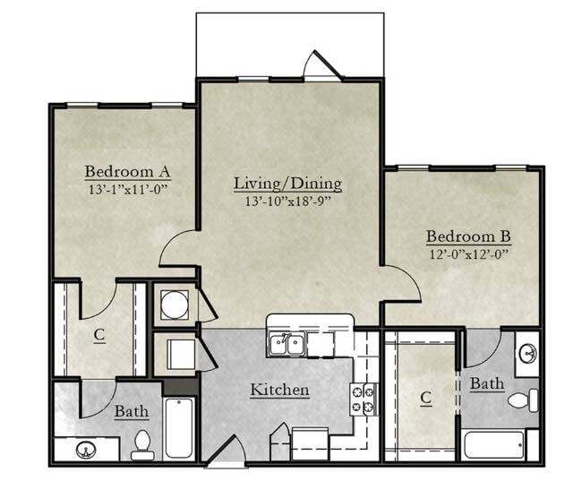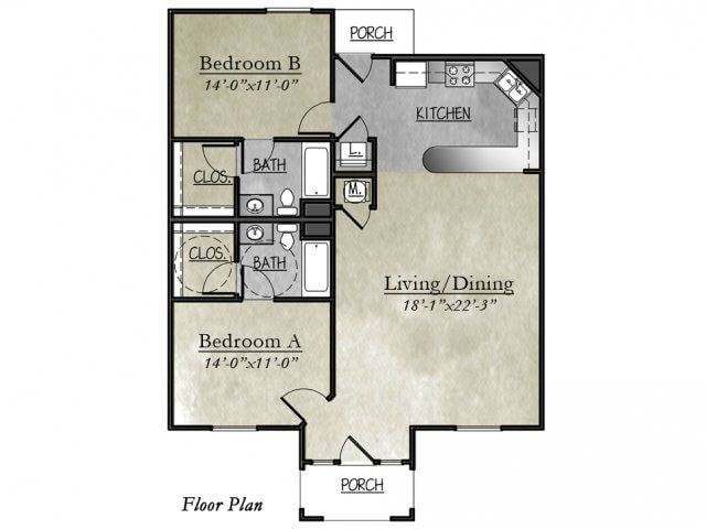 Apartment Model: 2x2 Flat2 Bedroom, 2 Bath, 1026 sq ftAvailable Now![]()