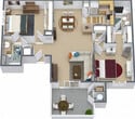 2 Bed 1.5 Bath - Floorplan 3 Bedrooms