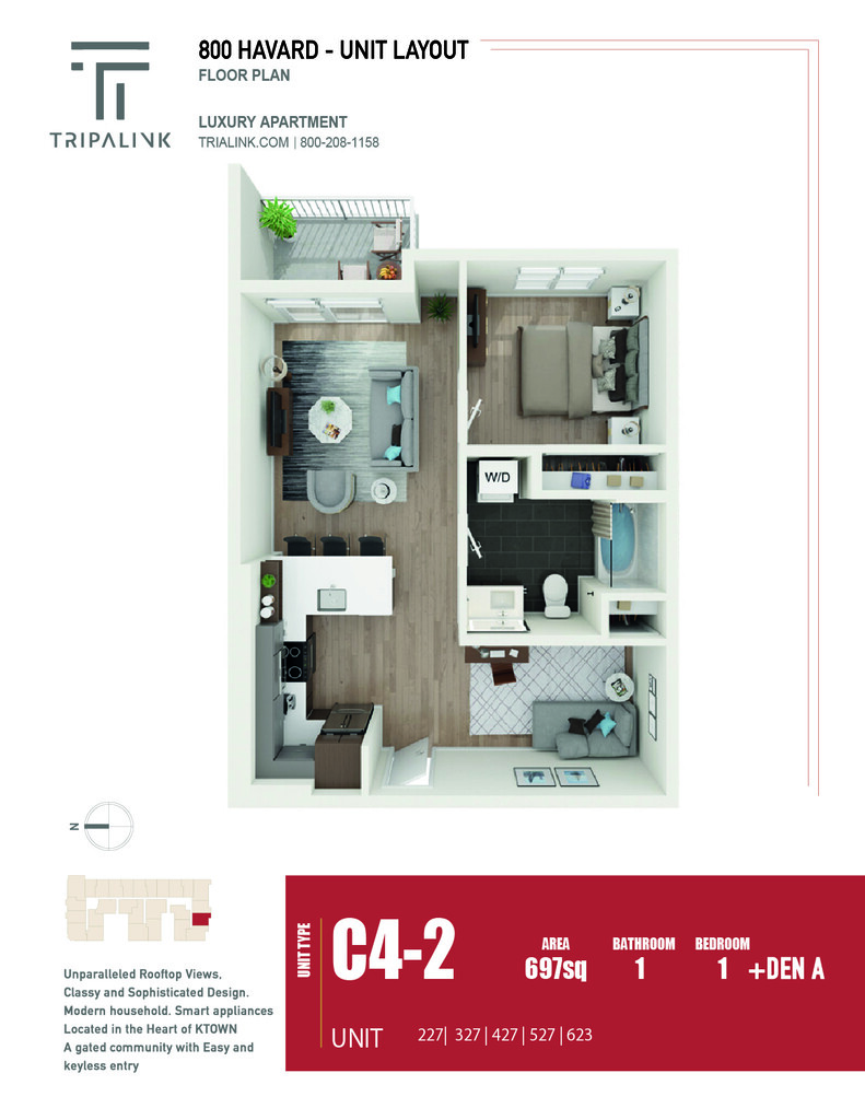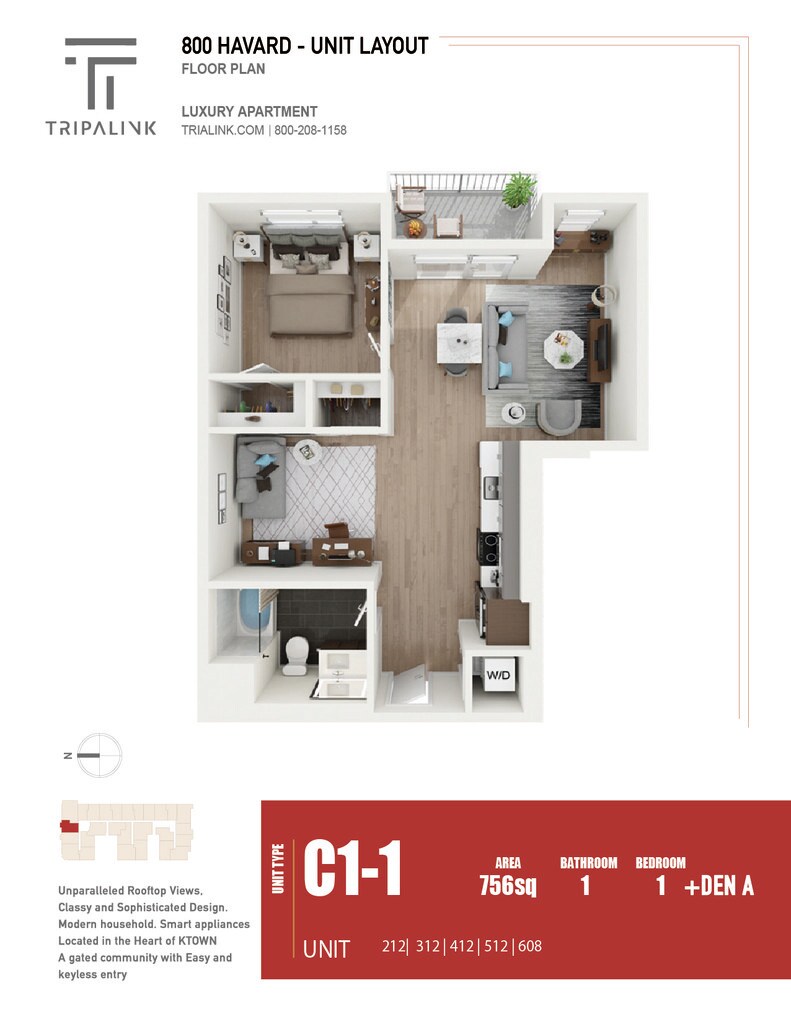 1 Bed 1 Bath +Den - 764 sqft - Floorplan 1 Apartment Unit: Unit 612Apartment Model: 1 Bed 1 Bath +Den - 764 sqft$2,7131 Bedroom, 1 Bath, 764 sq ftAvailable November 14, 20251 Bed 1 Bath - 731 sqft