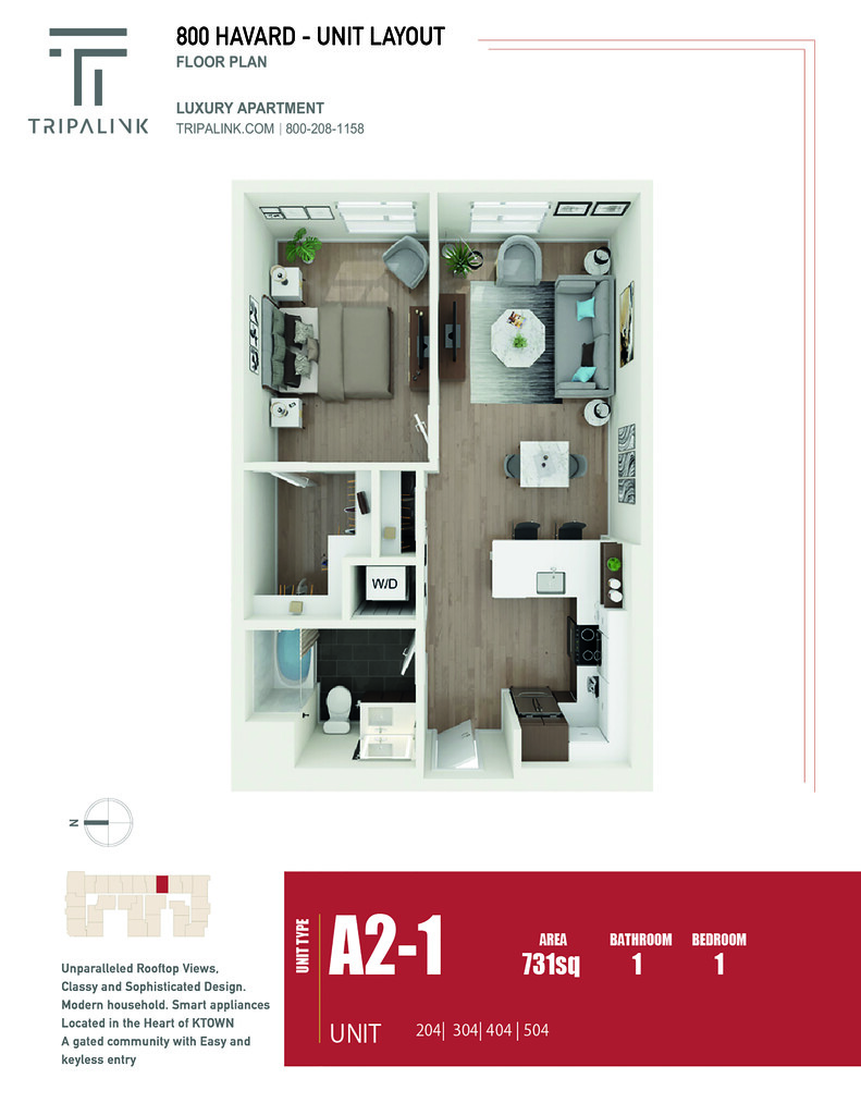 1 Bed 1 Bath - 731 sqft - Floorplan 2 Apartment Unit: Unit 204Apartment Model: 1 Bed 1 Bath - 731 sqft$2,6451 Bedroom, 1 Bath, 731 sq ftAvailable January 8, 20261 Bed 2 Bath +Den - 907 sqft