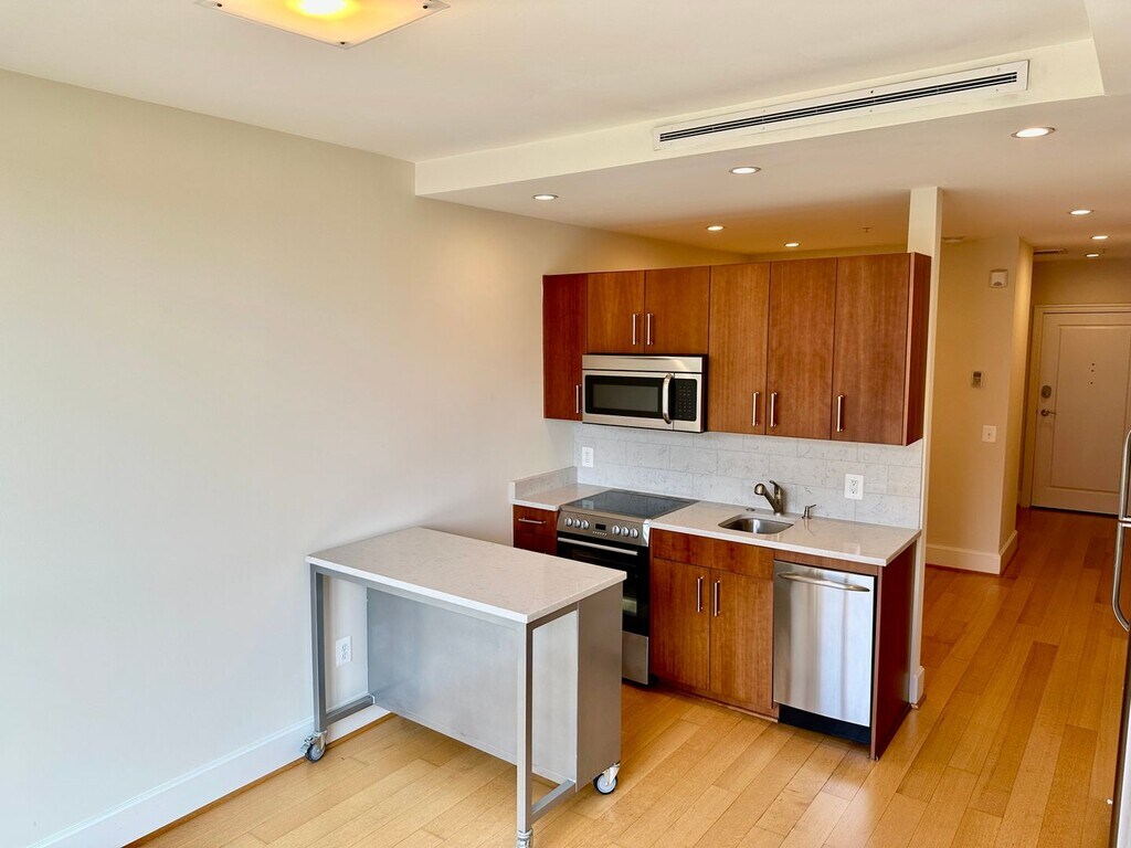 July 20, 2015The upside: 1. The location might be the best in the city. Walk Score gives the address a 99. Trader Joe's is across the street, the Metro is two blocks away and many offices are within a 25-minute walk. 2. You'll hear it often: the restaurants are great. Le Diplomate is overrated, but do try Estadio and Rice. 3. The building has a handsome exterior and good amenities, including a roof deck, fitness center, resident lounge, and storage units. 4. While the units are relatively small, the layouts ...are efficient and don't feel cramped. The downside: 1. If you're a pet lover, you're out of luck. 2. The noise on weekend nights can get annoying, but the windows do a pretty good job of blocking most of it out. 3. Pricing is steep.Read MoreReview from Apartments.com