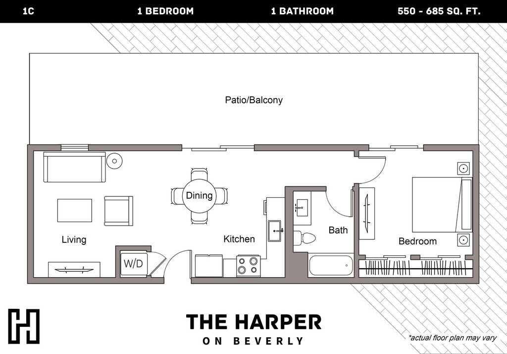 The current rent special at The Harper on Beverly is: 1 Month Free on a 14 Month Lease, applied on the 6th Month..