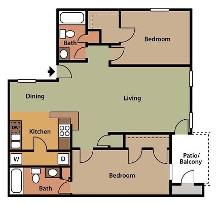 Apartment Model: Move in Special!$1,2202 Bedroom, 2 Bath, 875 sq ftAvailable NowFloorplansPhotos![]()