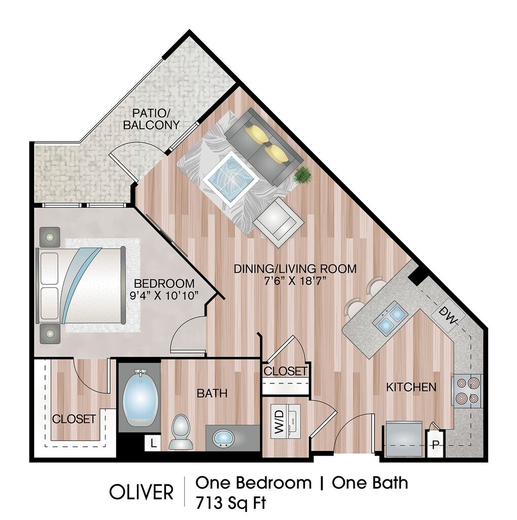 1 Bed, 1 Bath, 713 sq ftAvailable NowModel Gallery