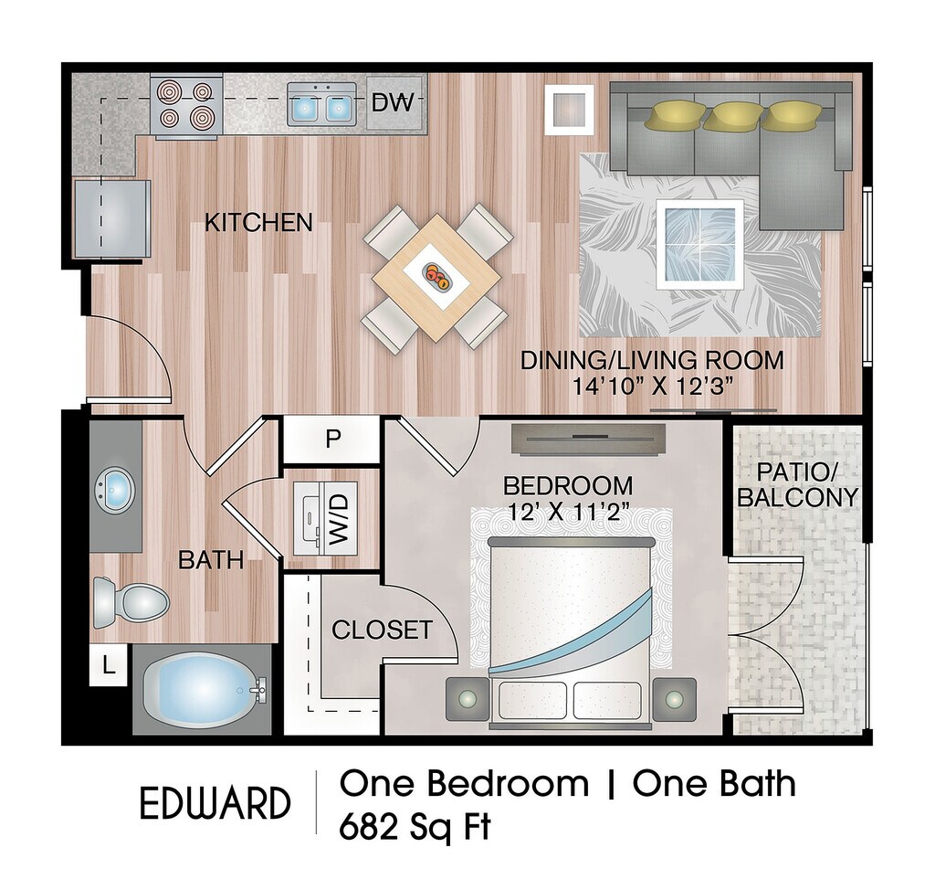 Apartment Model: EdwardFrom $3,1451 Bedroom, 1 Bath, 682 sq ftAvailable Now![]()