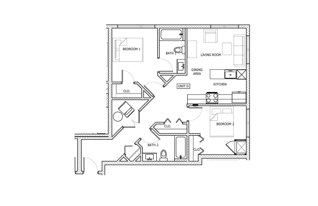 2 Beds, 1 Bath, 1000 sq ftModel Gallery