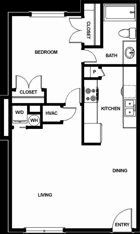 A1 1 Bed 1 Bath - Floorplan 1 A2 Large 1 Bed 1 Bath