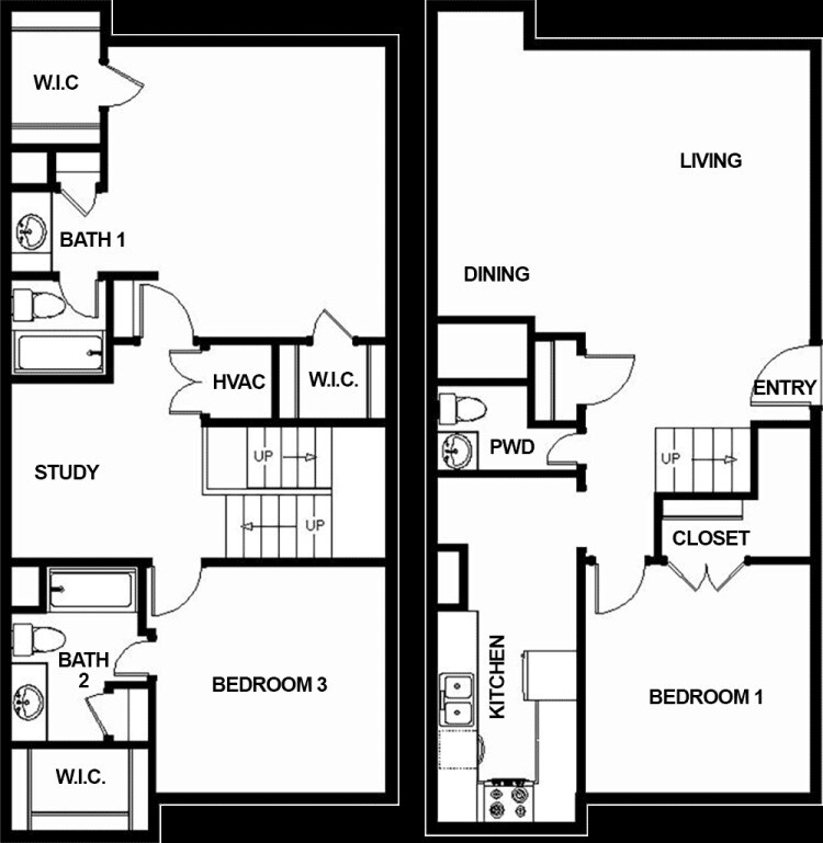 A3R Large 1 Bed 1 Bath with a Study - Floorplan 1 2 Bedrooms