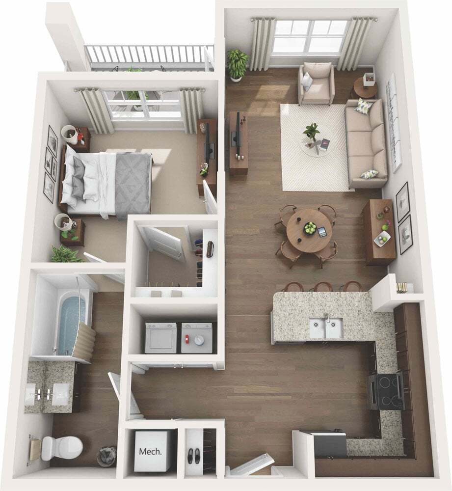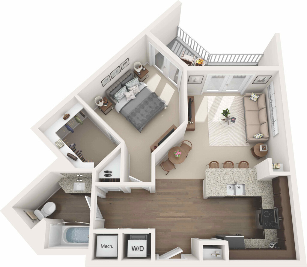 1 Bed, 1 Bath, 616 sq ftModel Gallery