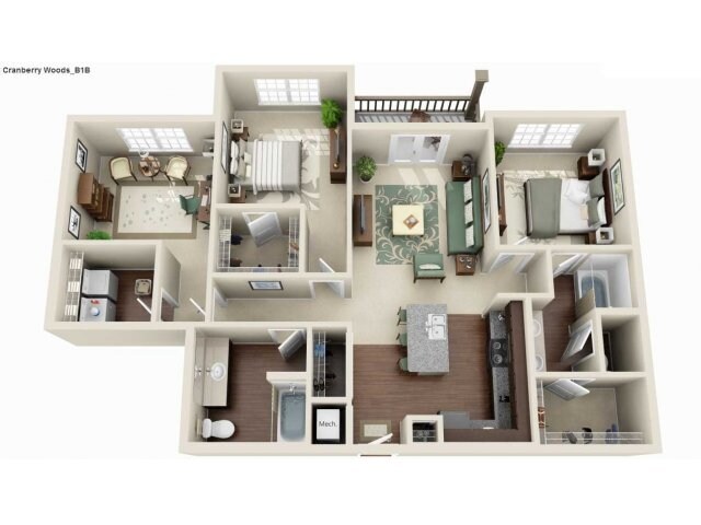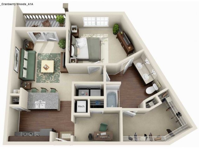 The Haven at Cranberry Woods offers Studio to 3 Bedroom apartments starting from $1,466 and having 614–1,894 sq ft. Here is the current pricing and availability: