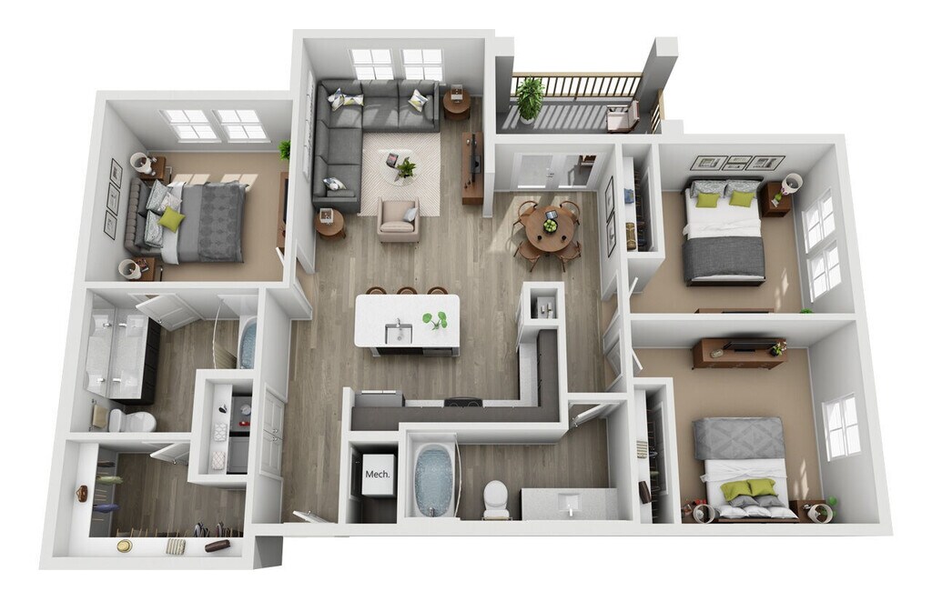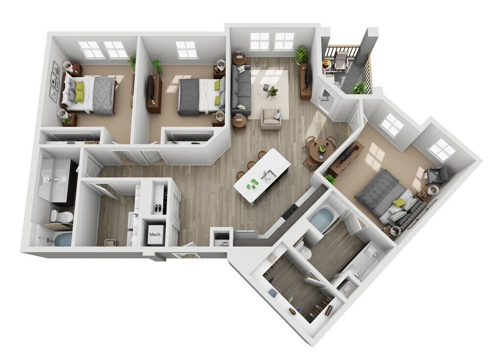 Studio to 3 Bedroom Apartments at The Haven at Indigo Square currently range from $1,695 to $3,221