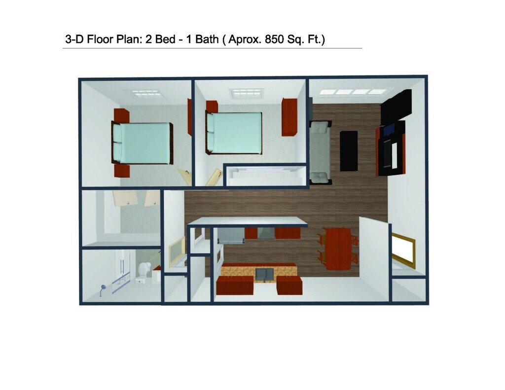 2 Beds, 1 Bath, 850 sq ftModel Gallery
