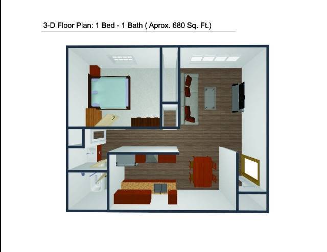 1 Bed, 1 Bath, 680 sq ftModel Gallery