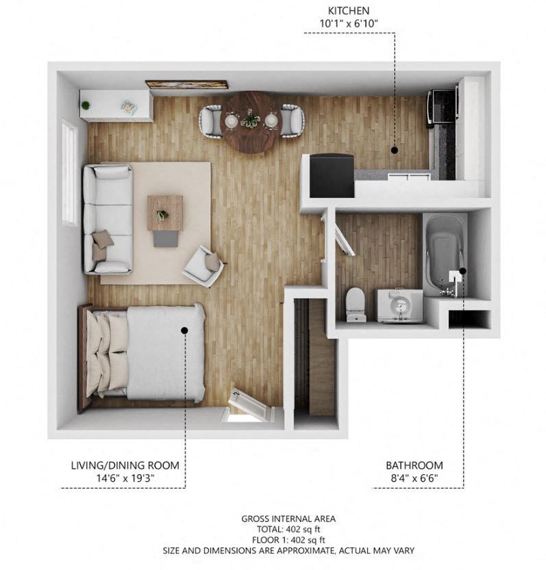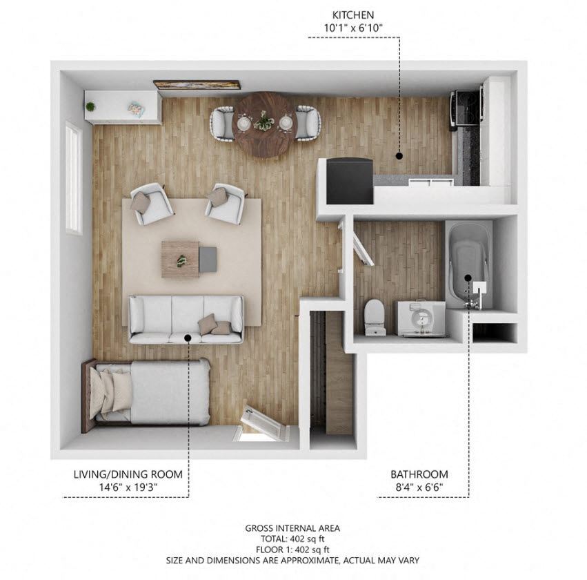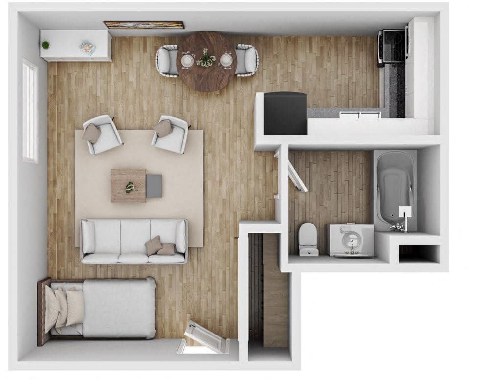 Apartment Model: hwt-std$750Studio, 1 Bath, 400 sq ftAvailable December 7, 2025![]()