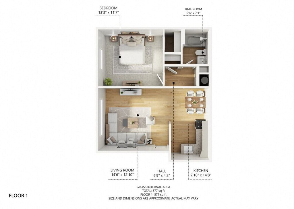 Apartment Model: hwt-2aptFrom $9952 Bedroom, 1 Bath, 800 sq ftAvailable Now![]()