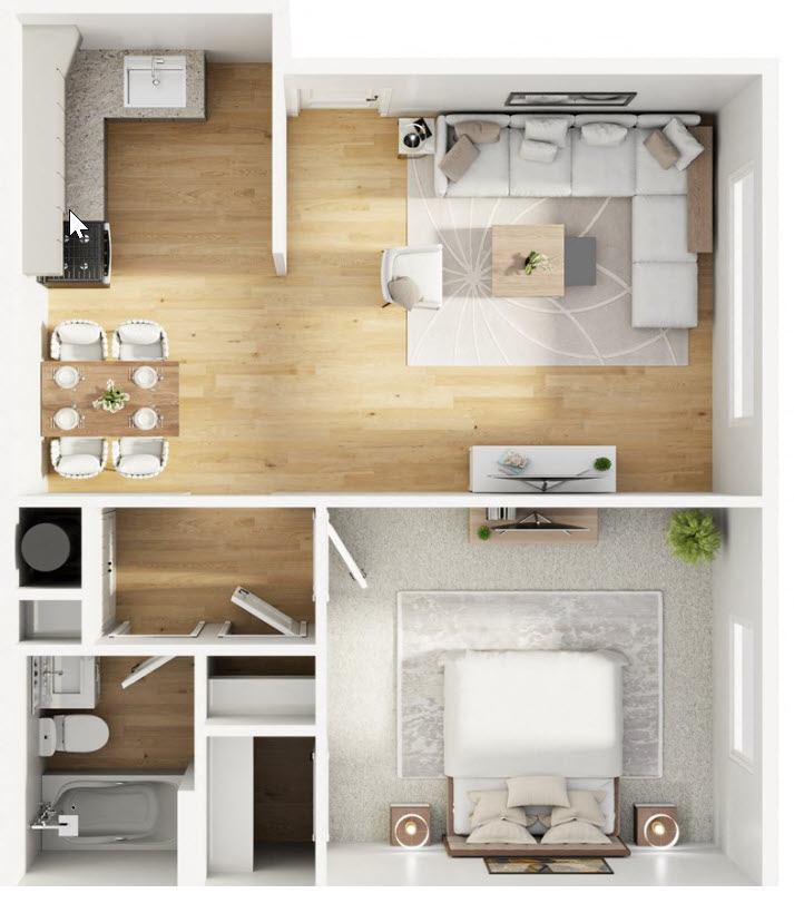 1 Bed, 1 Bath, 550 sq ftAvailable NowModel Gallery