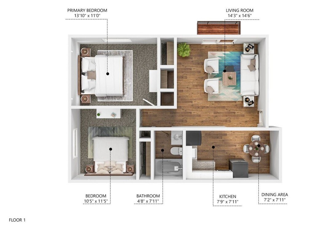 2 Beds, 1 Bath, 800 sq ftAvailable NowModel Gallery