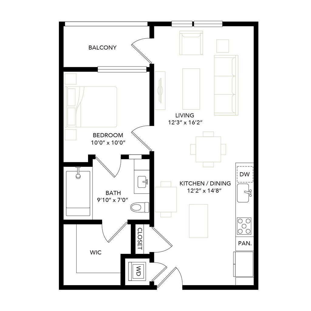 Apartment Model: A1From $3,8641 Bedroom, 1 Bath, 627 sq ftAvailable NowFloor plans are artist's rendering. All dimensions are approximate. Actual product and specifications may vary in dimension or detail. Not all features are available in every rental home. Prices and availability are subject to change. Base rent is based on monthly frequency. Additional fees may apply, such as but not limited to package delivery, trash, water, amenities, etc. Deposits vary. Please see a representative for details.