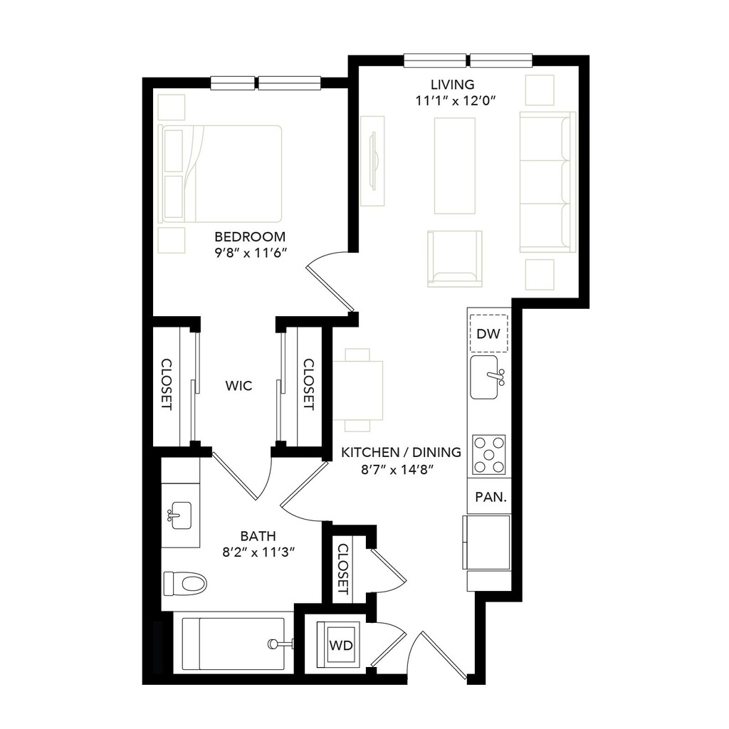 1 Bed, 1 Bath, 600 sq ftModel Gallery