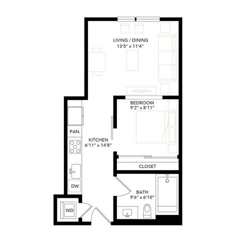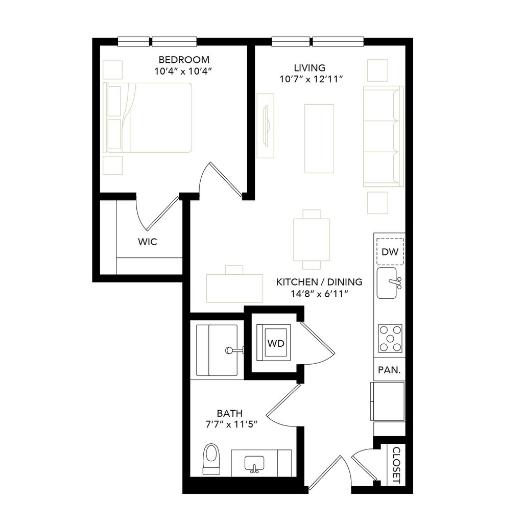 Studio, 1 Bath, 515-516 sq ftAvailable NowModel Gallery