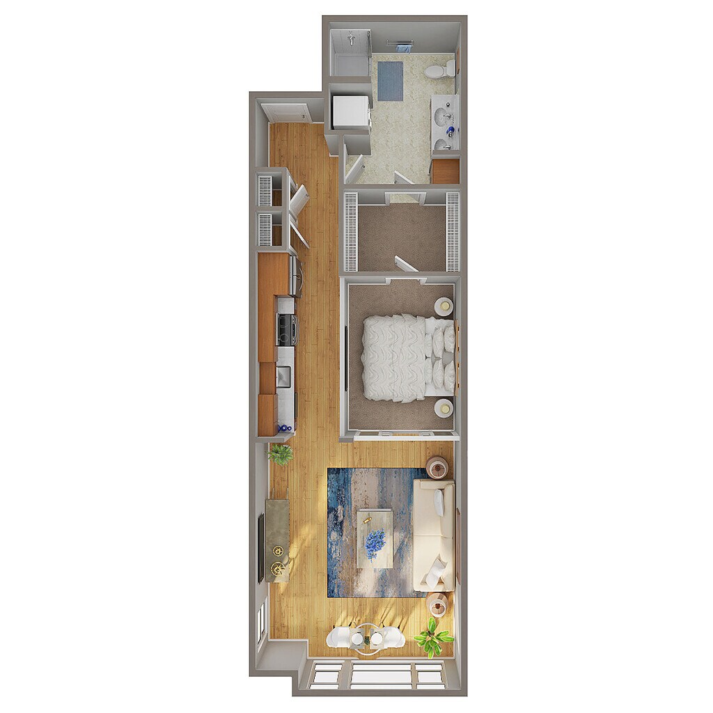 Studio, 1 Bath, 490 sq ftAvailable NowLargest StudioThis is the largest Studio at this PropertyModel Gallery